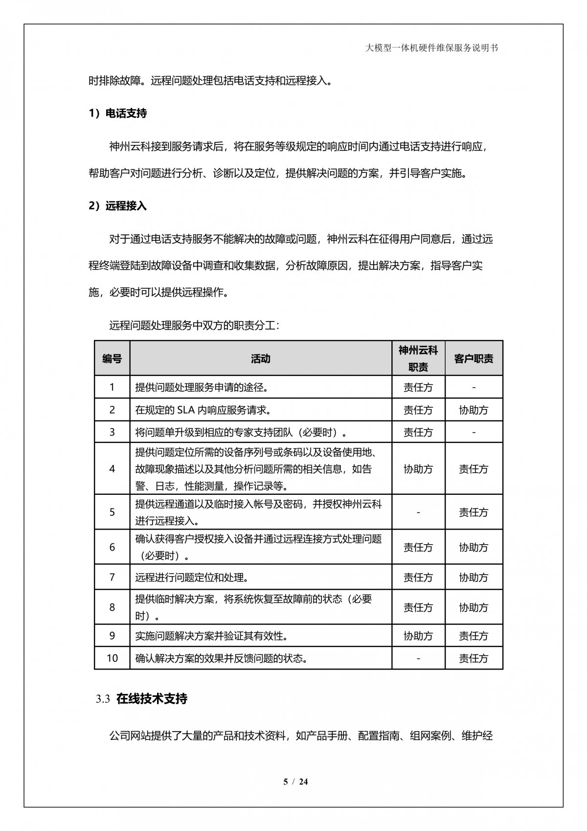 神州A924 DS大模型一体机硬件维保服务说明书_V1.1